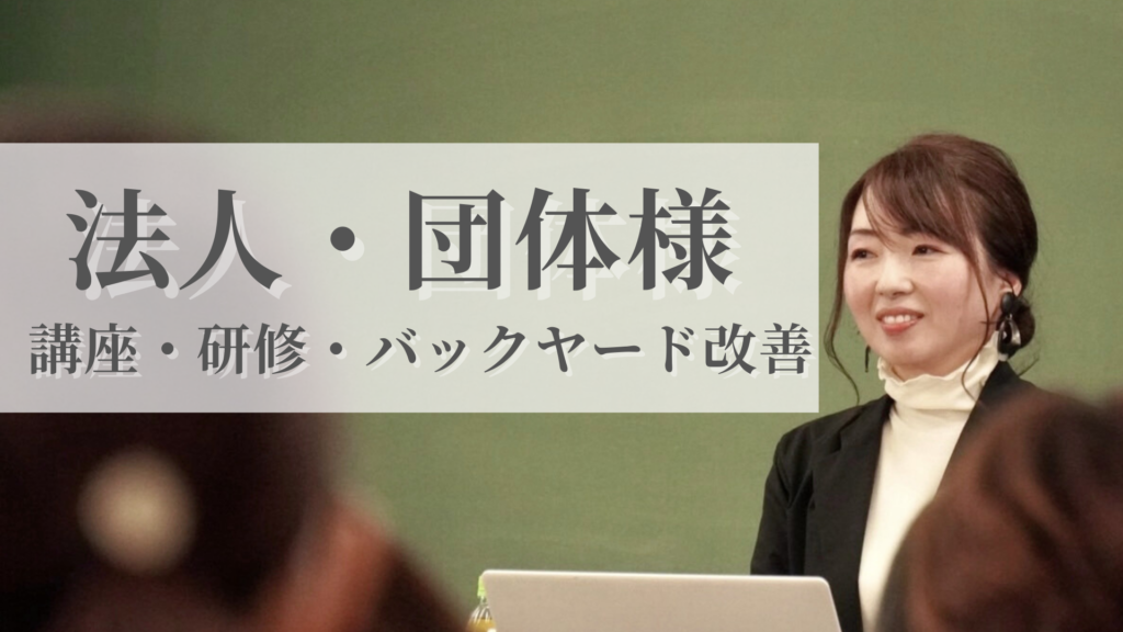 企業様向けの「集客イベント講座」や、学校・PTA様向けの「片付け・インテリア等の教育講座」をメインに承っております。また、エステサロンなどの店舗インテリアや、生産性を高めるバックヤードの環境改善も得意としています。難しい言葉を使わず、参加者の皆様に寄り添った「今日からできる工夫」を分かりやすくお伝えします。